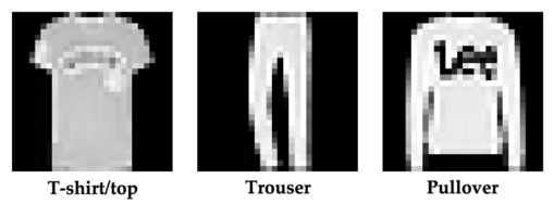 Bear with me, because we’ll take a detour from audio: let’s build a quantized autoencoder on images from Fashion MNIST. We’ll take a subset with the first three classes: t-shirt/top, trouser, and pullover.