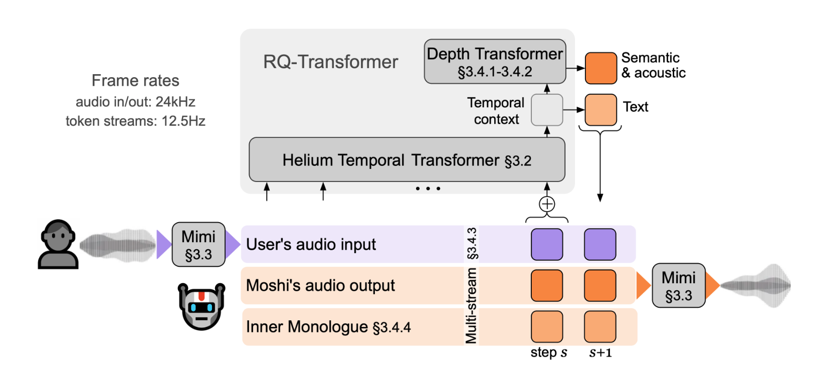 Moshi models two audio streams and a text stream in parallel